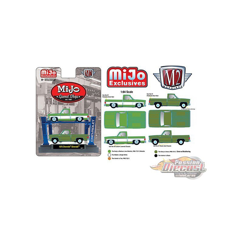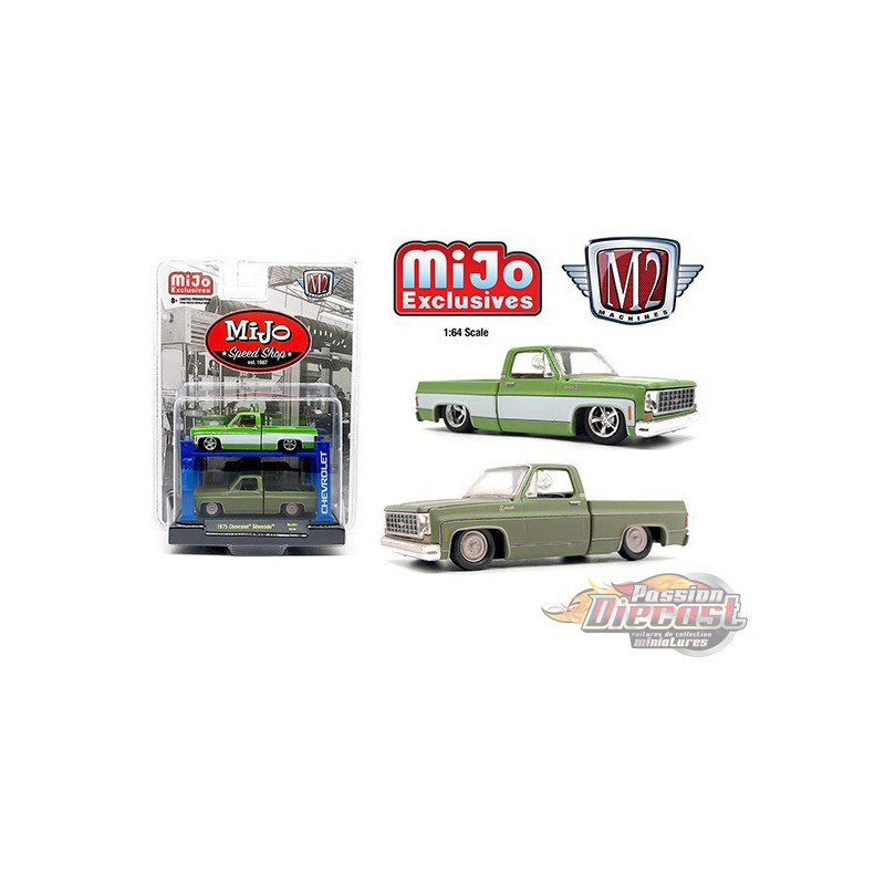 2x 1975 Chevrolet Silverado SQUAREBODY - Mijo Speed Shop with 4 post Lift - M2 Machines 1:64 - 33000-MJS01