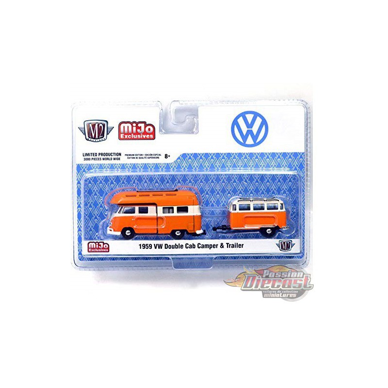 1959 Volkswagen Bus Double Cab Camper With Trailer - M2 Machines 1/64 Auto Trailer Mijo Exclusive - 38100 MJS03