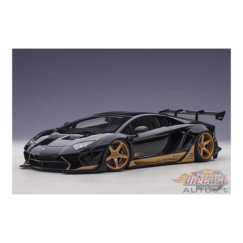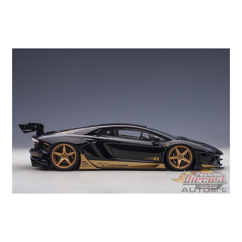 (Free shipping) Lamborghini Aventador LB WORKS - Gloss Black / Gold Accents - Autoart 79184