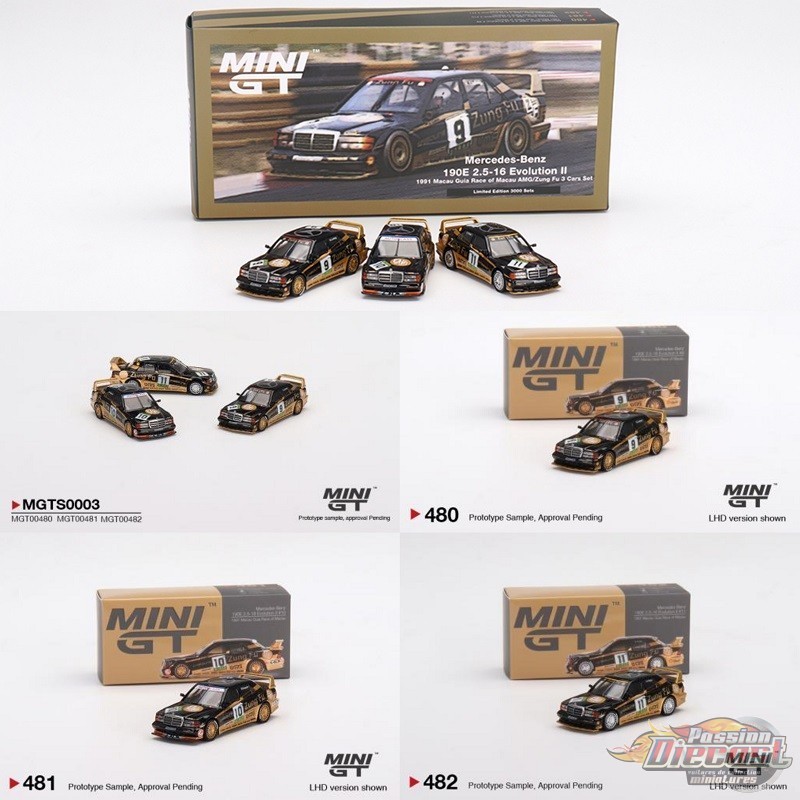 Mercedes-Benz 190E 2.5-16 Evolution II Macau Guia Race of Macau AMG/Zung Fu 3 Cars Set - Mini GT - 1:64 - MGTS0003