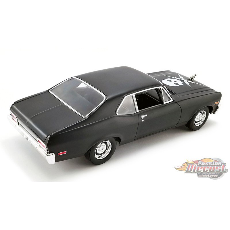 Accelerate your collection with the latest additions to the GMP collection with this 1971 Chevrolet Nova Nova Noir Mat as in the horror film "Death Proof, at 1:18 scale. Completely modified for the tape, with a safety cage, fin, tachometer mounted on the dashboard, a nitrogen bottle and a fully sealed and wired engine, The 1:18 scale molded replica in Limited Edition