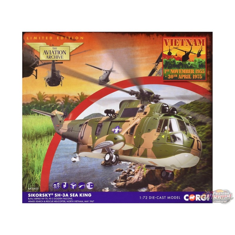 (Free shipping) Sikorsky SH-3A Sea King / HS-2 Golden Falcons, North Vietnam US Navy Nord-Vietnam 1967 / Corgi 1:72 AA33423