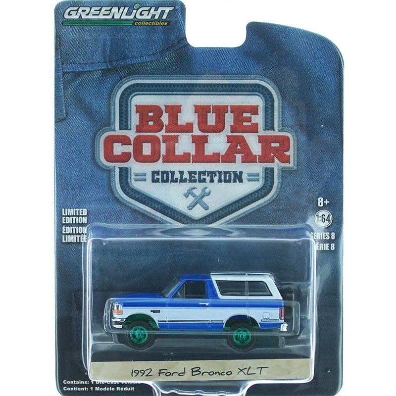 1992 Ford Bronco XLT Bright Regatta Blue and White - Blue Collar - GREENMACHINE 1/64 - 35180 FGR