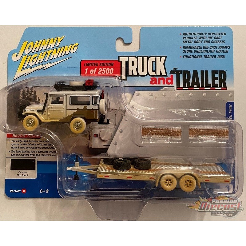 1980 Toyota Land Cruiser Flat Black Dirty with Open Trailer - White Lightning 1:64 - JLBT013 BGR