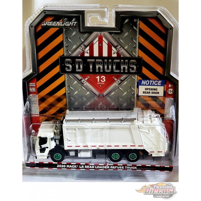 Green Machine 2020 Mack LR Rear Loader Refuse Truck - White - SD Trucks 13 - Greenlight 1/64 - 45130 BGR