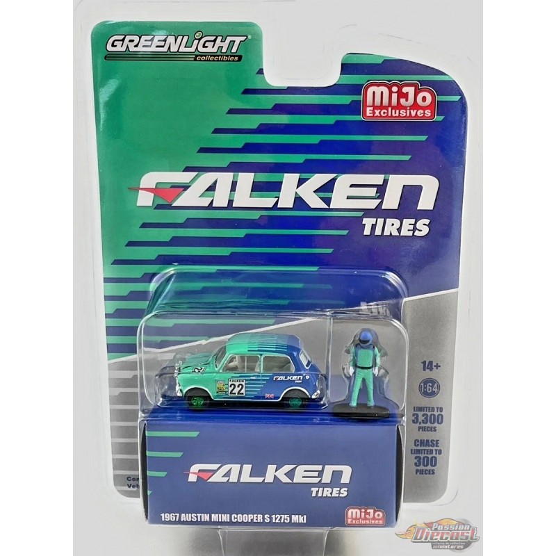 Green Machine Exclusives 1967 Austin Mini Cooper S 1275 MKI Falken With Driver Limited 3,600 - 1/64 Greenlight - 51454GR