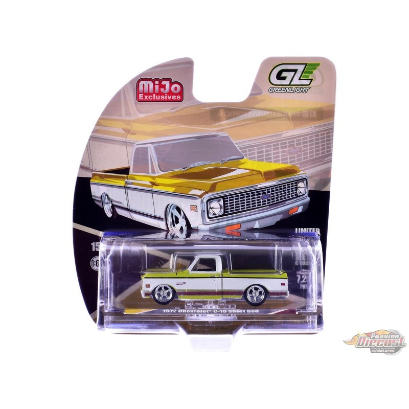 (Preorder) 1972 Chevrolet C-10 Short Bed Custom - Mustard Yellow with White Two-Tone - Greenlight 1/64 - GL-1352002