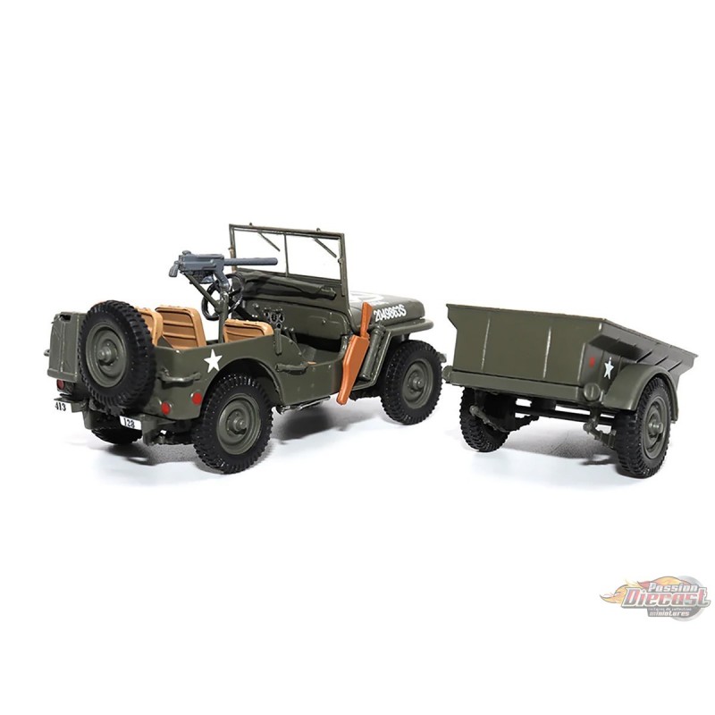 (Web Only) Jeep Willys 1/4-Ton Utility Truck Olive Drab with Trailer "US Army" AFVs of WWII 1:43 23200-44