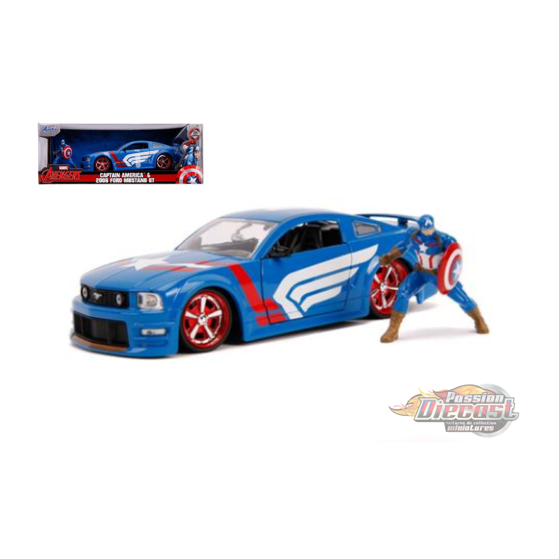 2006 Ford Mustang GT with Captain America Figure -Marvel Avengers - Jada 1/24 - 31187