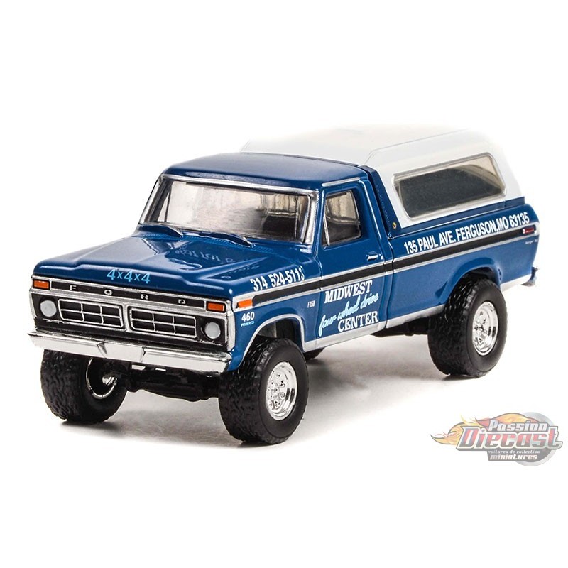 (Web Only) Midwest Four Wheel Drive Center - 1974 Ford F-250 with Camper Shell - Hobby Exclusive - 1/64 Greenlight - 30345