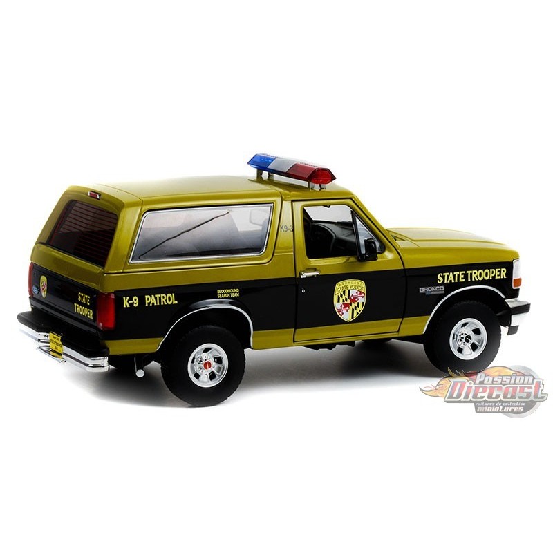 Maryland State Police State Trooper - 1996 Ford Bronco Bloodhound Search Team K-9 Patrol Vehicle - 1/18 Greenlight - 19113