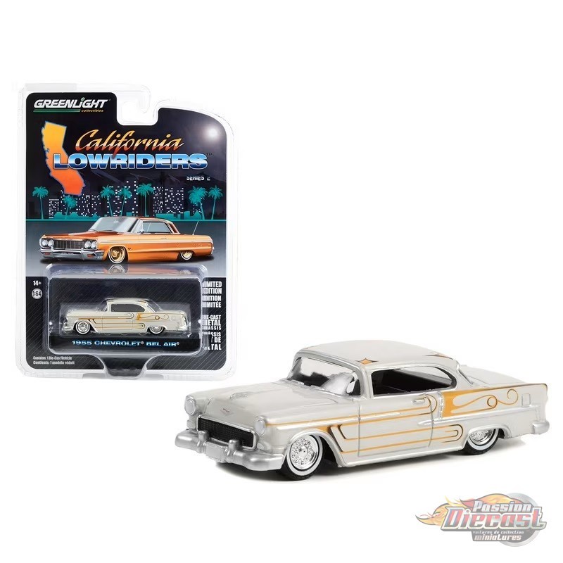 1955 Chevrolet Bel Air in Custom Light Gray Metallic and Gold - California Lowriders Series 2 -1/64 Greenlight - 63030 A