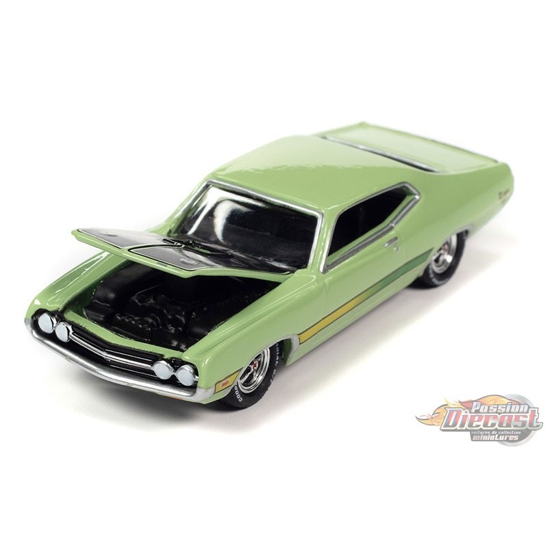 1971 Ford Torino Cobra in Grabber Lime with Laser Side Stripe and Black Hood - Johnny Lightning 1/64 - JLSP287 B