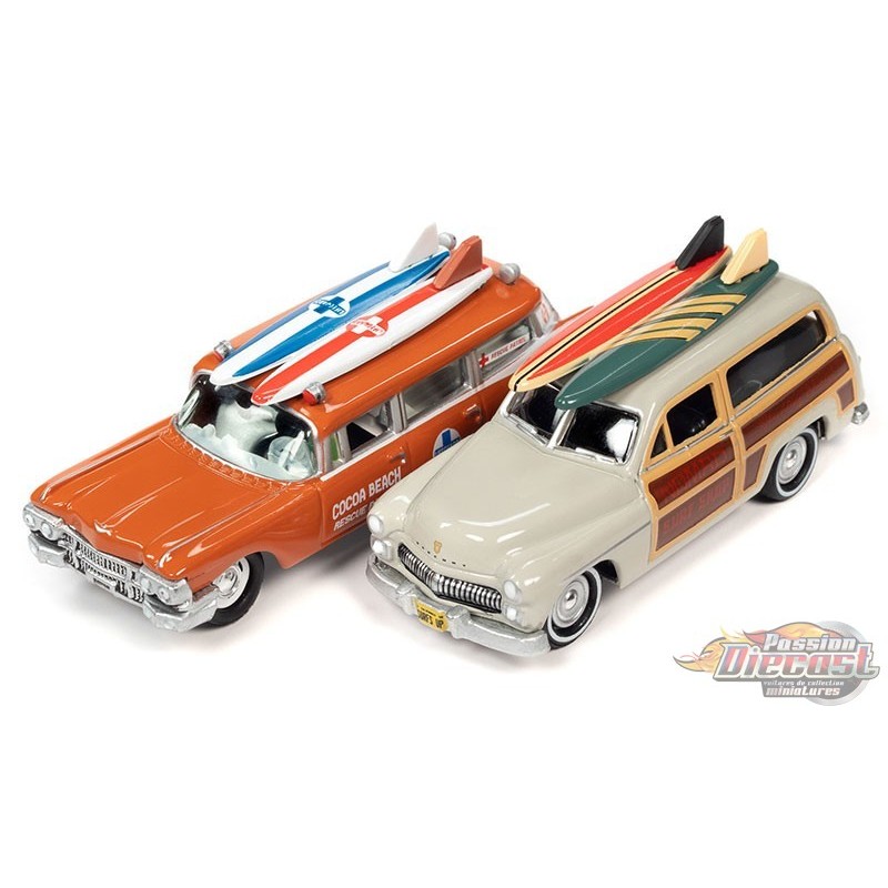 (Web Only)Surf Rods Pack - 1950 Mercury Woody Wagon - 1959 Cadillac Ambulance - Set of 2 - Johnny Lightning - 1:64 - JLSP343 B