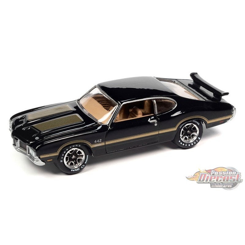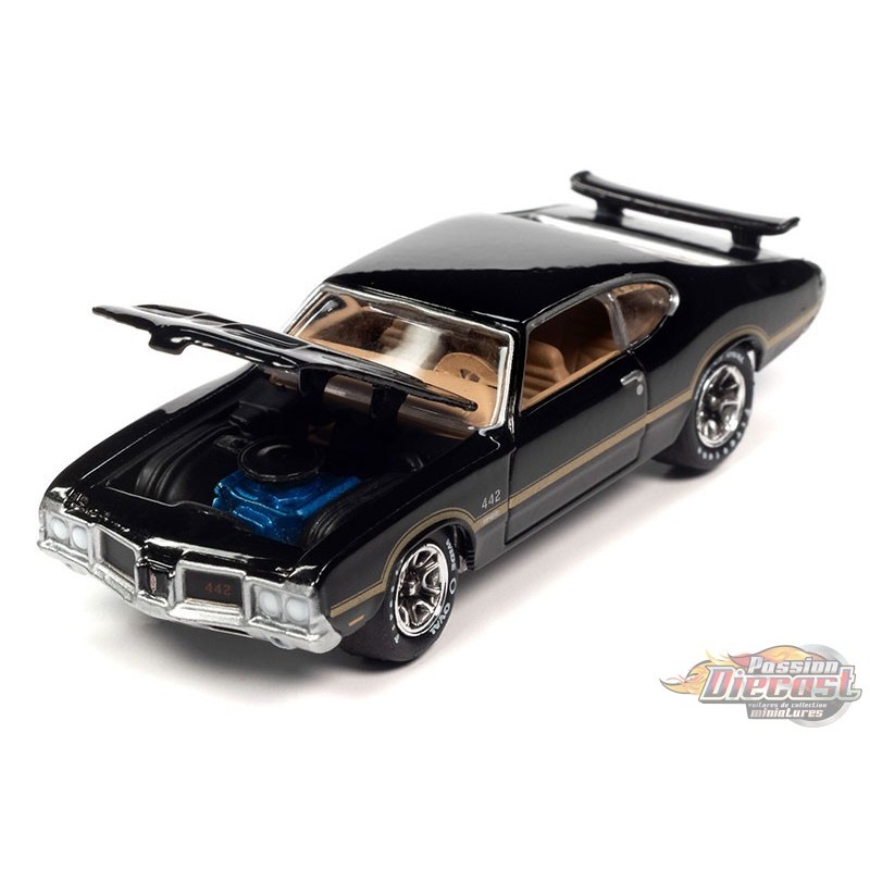 1972 Oldsmobile 442 W30 in Black with Gold Hood and Side Stripes - Johnny Lightning - 1/64 - JLSP339 B