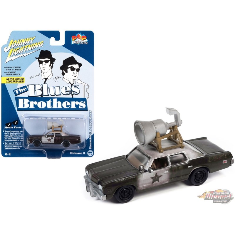Blues Brothers with Roof Speaker - 1974 Dodge Monaco in Black and White - Johnny Lightning - 1/64 - JLSP346