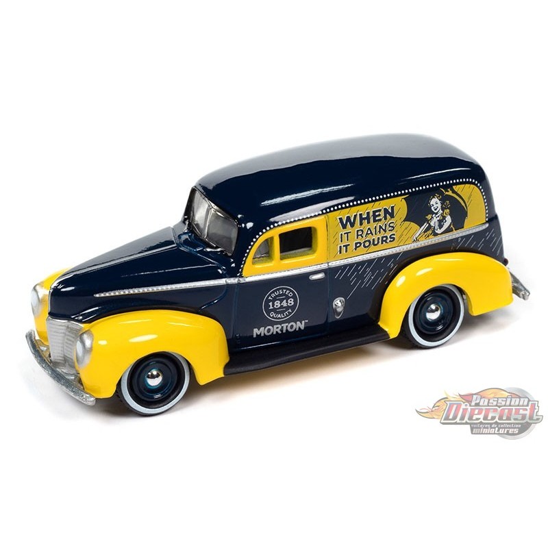 Morton Salt - 1940 Ford Sedan Delivery in Dark Blue and Yellow - Johnny Lightning - 1/64 - JLSP349