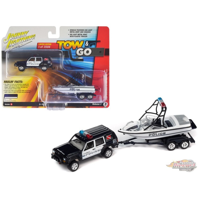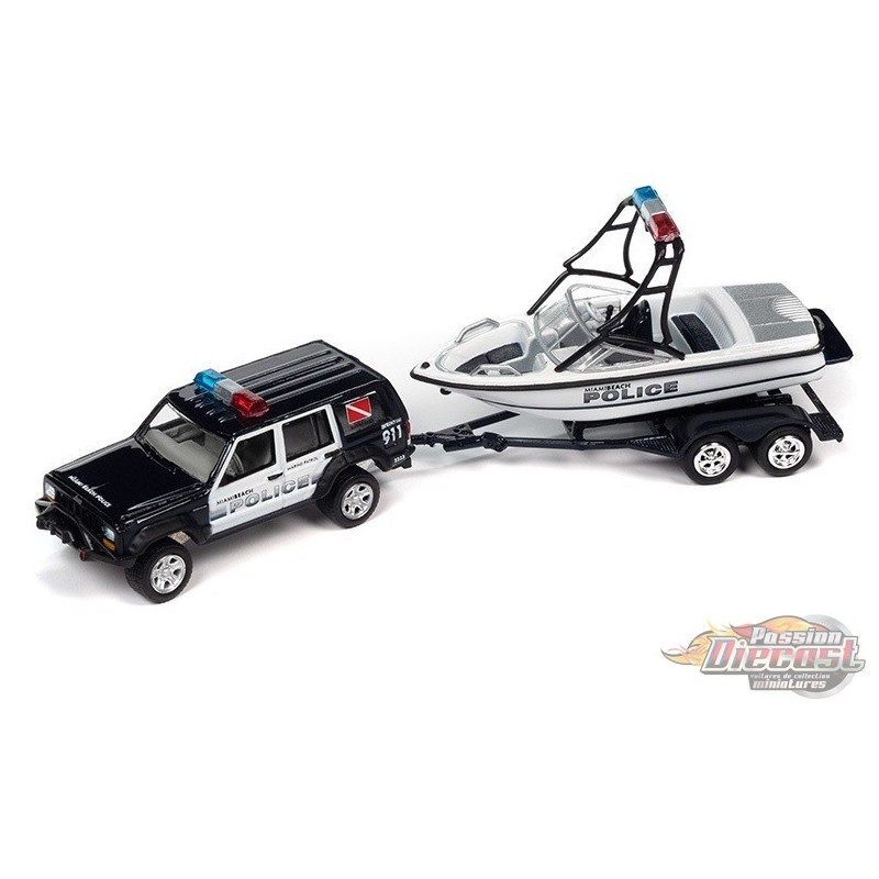 (web only) 1988 Jeep Cherokee with Mastercraft Boat and Light Bar