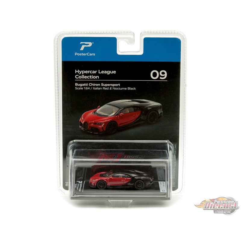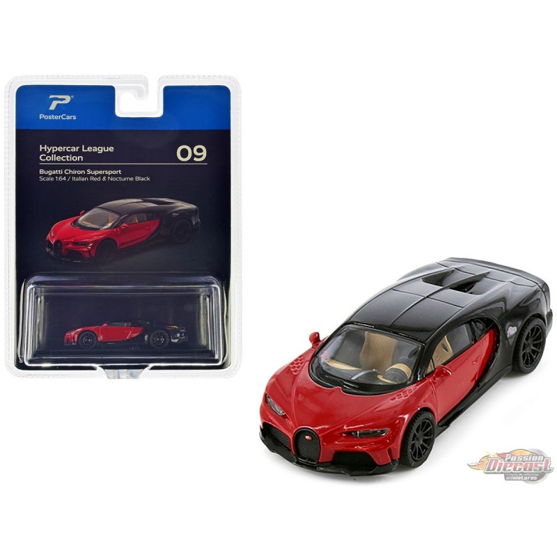 (web only)Bugatti Chiron Supersport - Italian Red & Nocturne Black - Hypercar League Collection - PosterCars - 1/64 - H09B