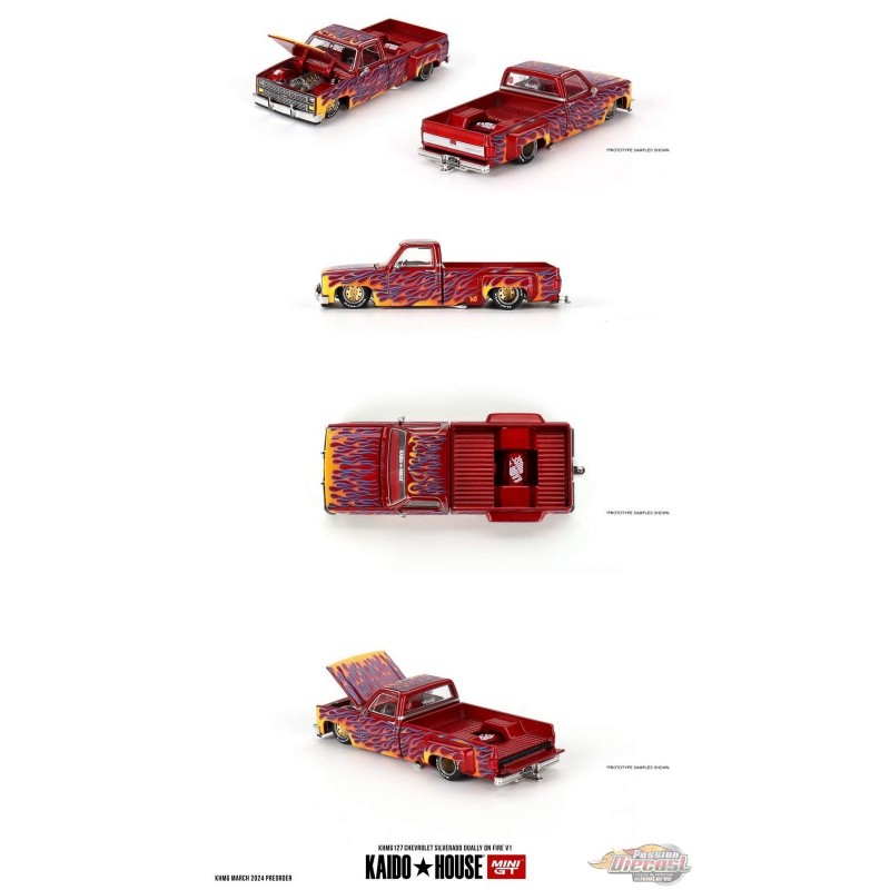 Reduced price! Kaido★House - Chevrolet Silverado Dually on Fire V1 - Mini GT - Mijo Exclusives - 1/64 - KHMG127 Passion Diecast View larger