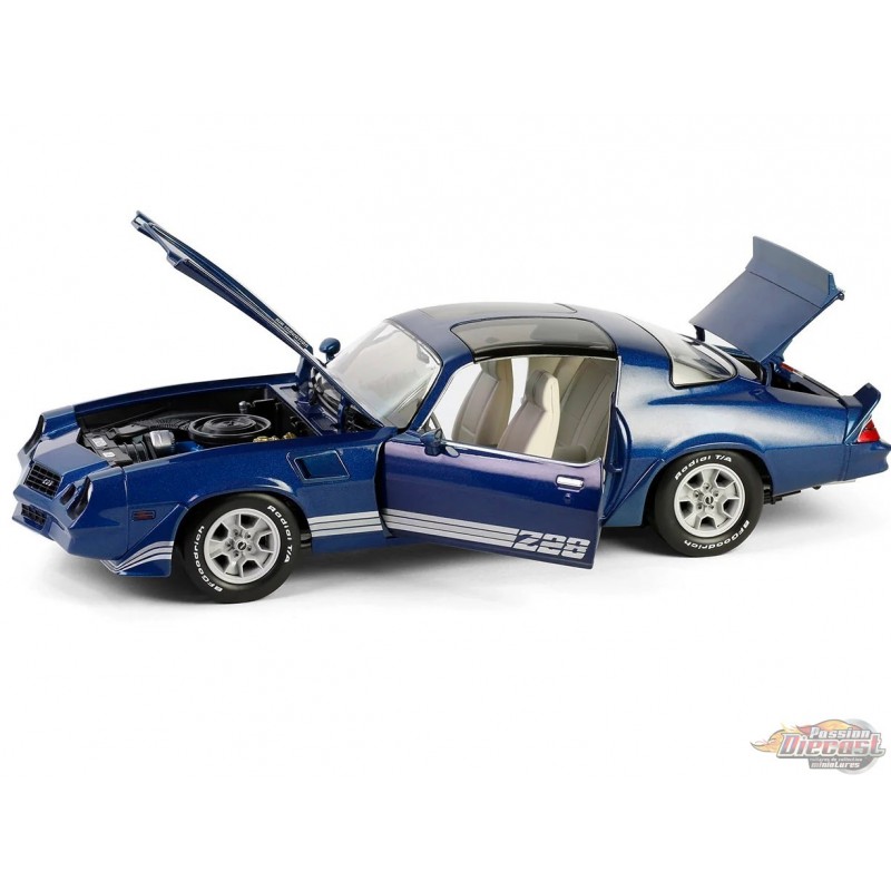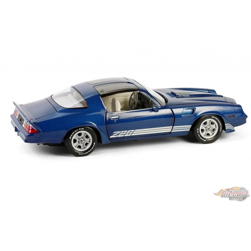 1980 Chevrolet Camaro Z/28 with T-Tops in Dark Blue with Charcoal Tri Color Stripes - 1/18 - Greenlight - 13691