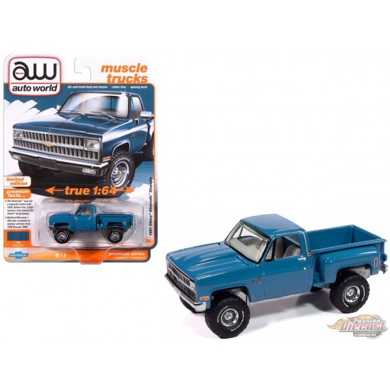 1981 Chevrolet Silverado Stepside 10 Pickup - Medium Blue - Auto World - 1/64 - AWSP179 A