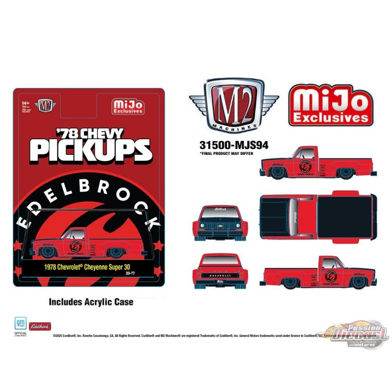 (Preorder) 1978 Chevrolet Cheyenne Super 30 Custom EDELBROCK - Red - MiJo Exclusives - M2 Machine - 1:64 - 31500-MJS94