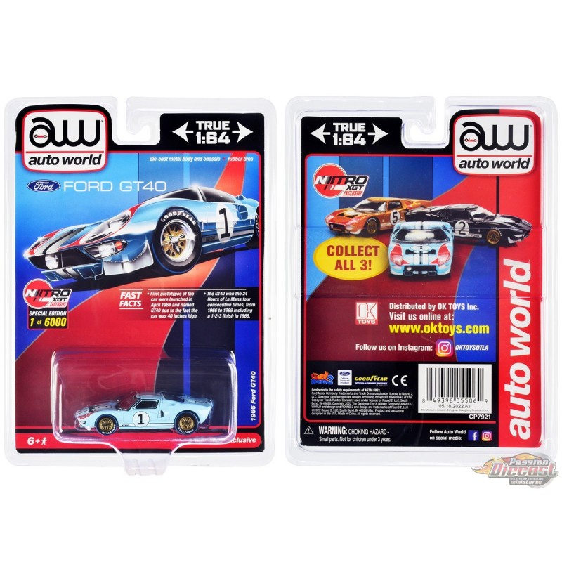 Ford GT40 No.1 Le Mans 1966 Light Blue with Stripes Limited to 6000 pieces - Auto World - 1/64 - CP7921
