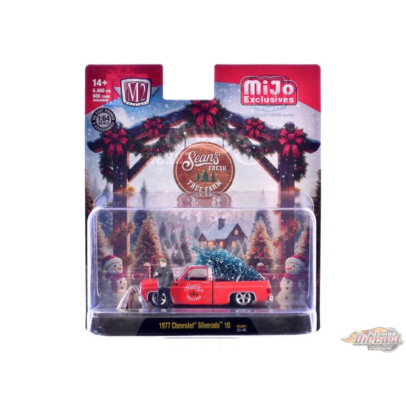 (Preorder) Diorama Seans Fresh Tree Farm 1977 Chevrolet Silverado 10 with Sean Figure & Dog - M2 Machine - 1:64 - 67500-MJS01