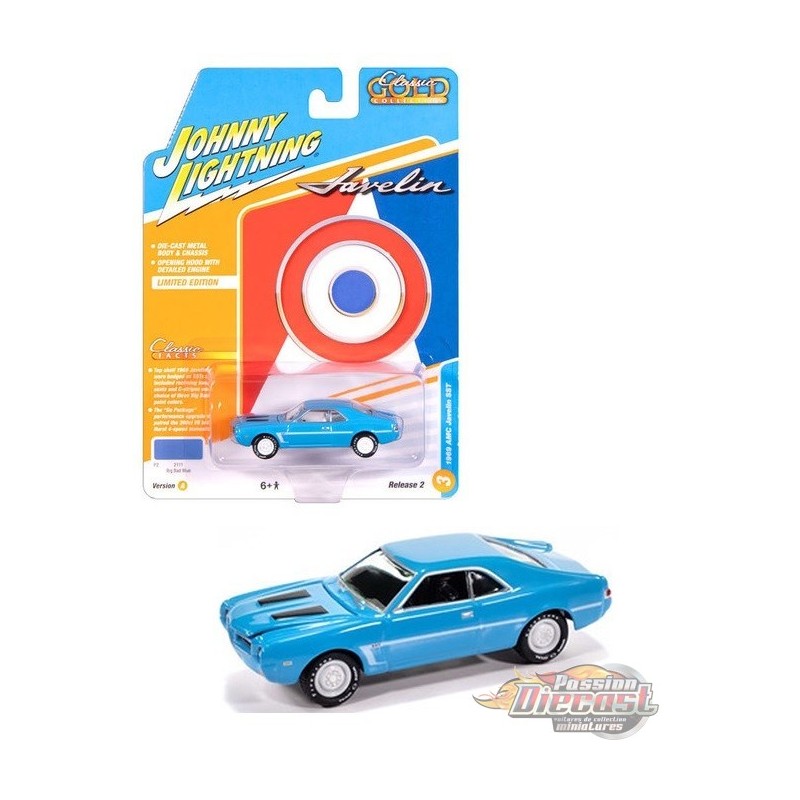 (Preorder) 1969 AMC Javelin in Big Bad Blue with White C Stripe - Johnny Lightning 1/64 - JLCG037 E