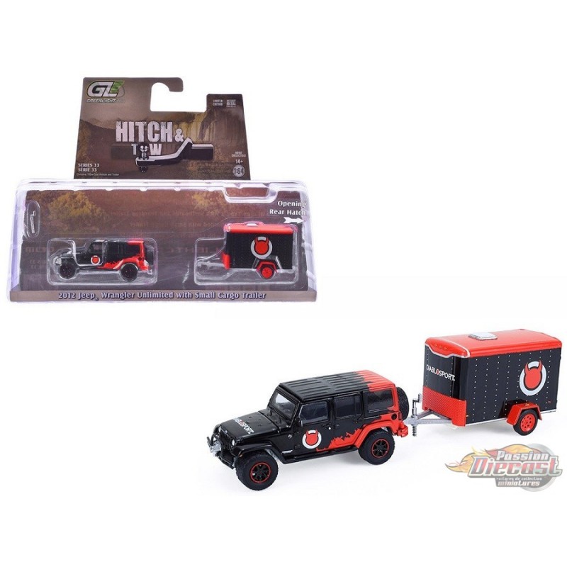 (Preorder) 2012 Jeep Wrangler Unlimited with Small Cargo Trailer - Hitch & Tow Series 33 - 1/64 Greenlight - 32330 C