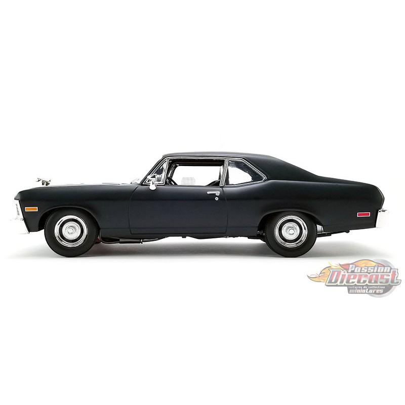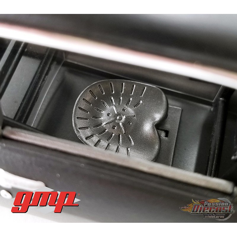 Accélérez votre collection avec la toute dernières nouveautés de la collection GMP avec cette 1971 Chevrolet Nova Noir Mat comme dans le film d'horreur "Death Proof, à l'échelle 1:18. complètement modifié pour la bande, avec une cage de sécurité, aileron, tachymètre monté sur le tableau de bord, une bouteille d'azote et un moteur entièrement plombé et câblé, La réplique moulée à l'échelle 1:18 en édition Limité