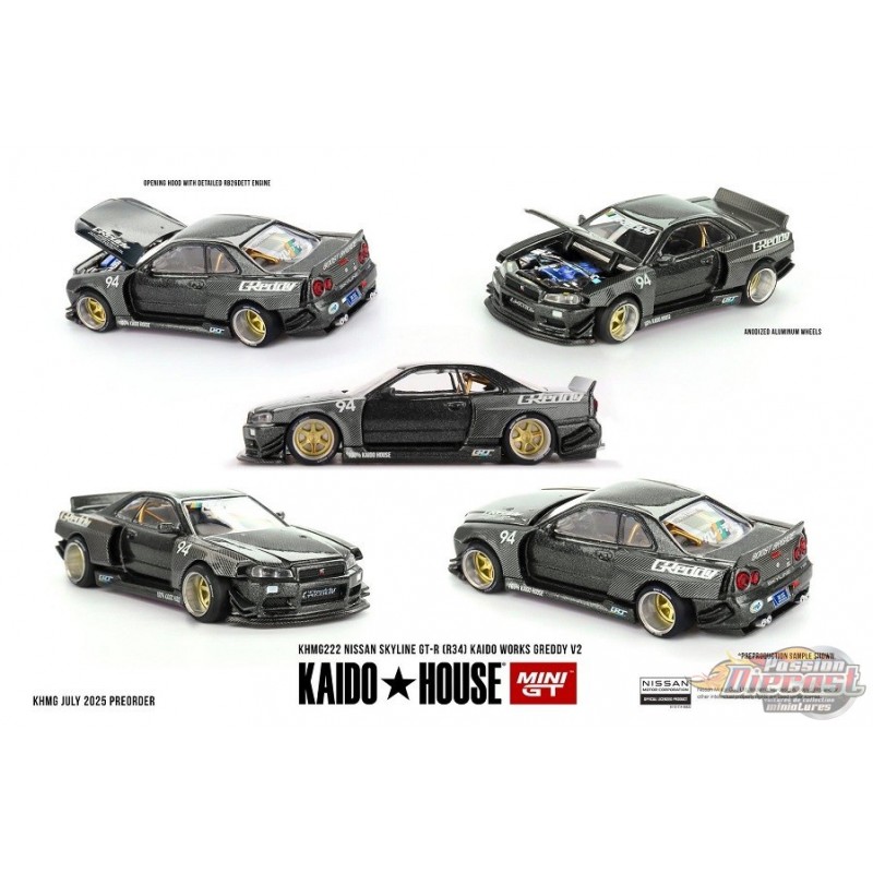 (Preorder) Nissan Skyline GT-R (R34) Kaido Works GReddy V2 - Mini GT & Kaido★House 1/64 - KHMG222