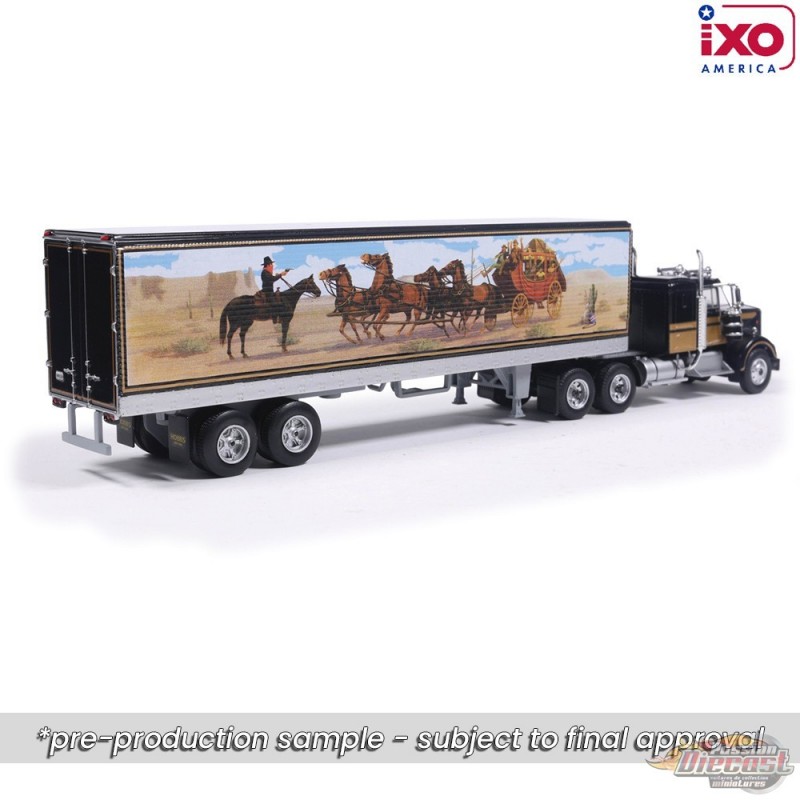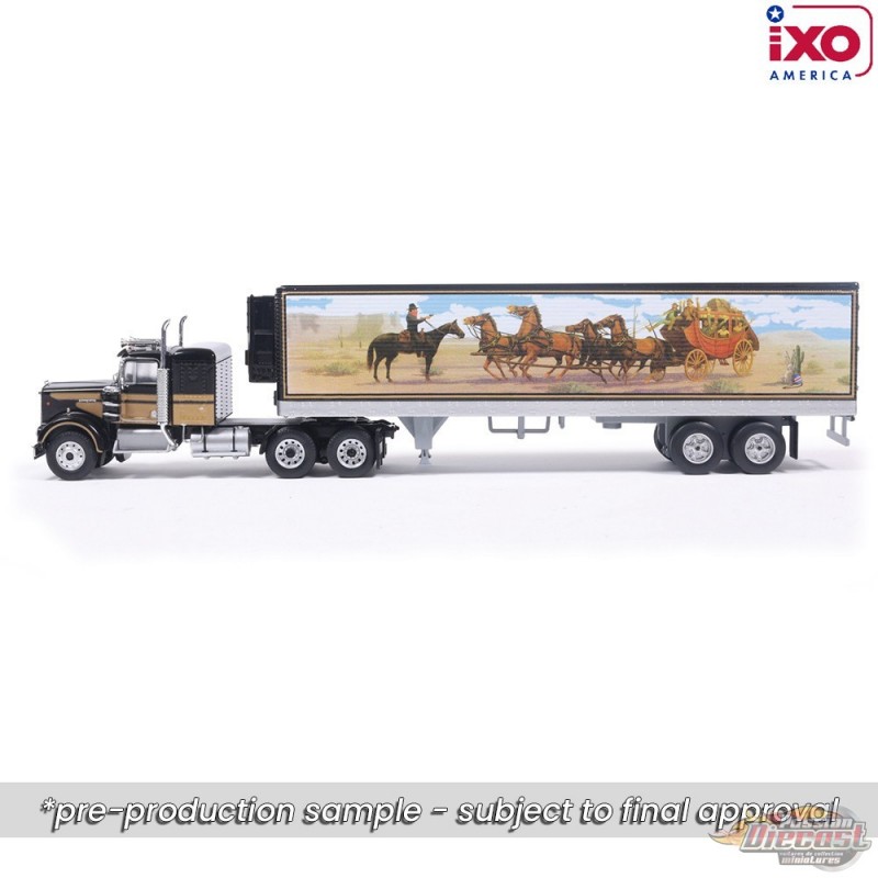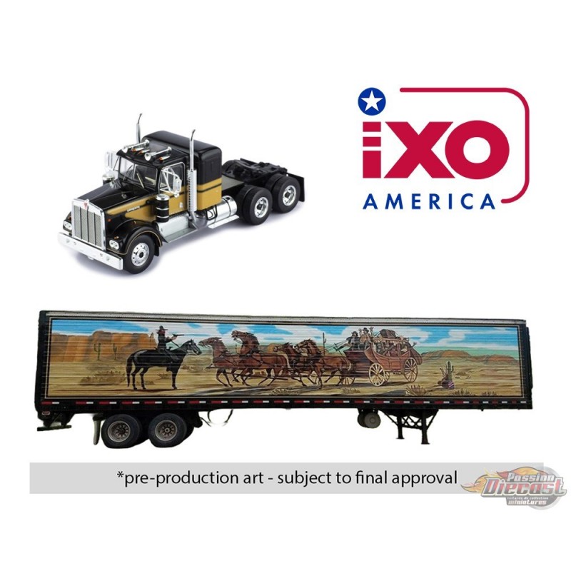 (Preorder) Semi-remorque Kenworth W900 1976 avec remorque - Noir avec graphismes - IXO Models - 1:64 - U64TRTR004S