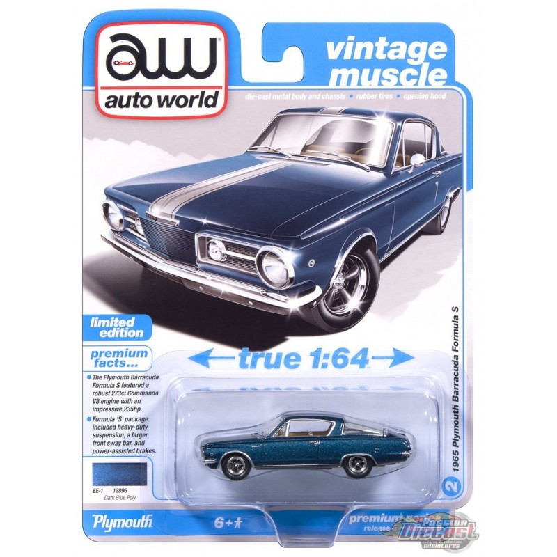 (Preorder) Plymouth Barracuda 1965 bleu & bande argenté - 2025 Premium Release 3 Version B - Auto World - 1/64 - AWSP207 B