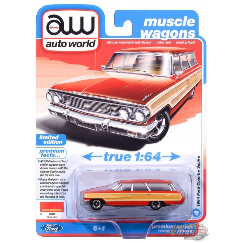 Nouveau Prix réduit ! Ford Country Squire 1964 rouge & garnitures bois - 2025 Premium Release 3 Version B - Auto World - 1/64 - AW64522 B B Agrandir l'image