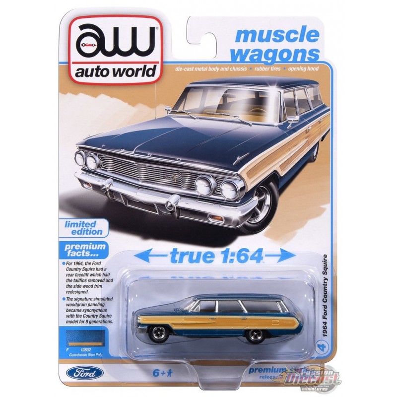 (Preorder) 1964 Ford Country Squire Guardsman Blue & bois - 2025 Premium Release 3 Version A - Auto World - 1/64 - AWSP205 A