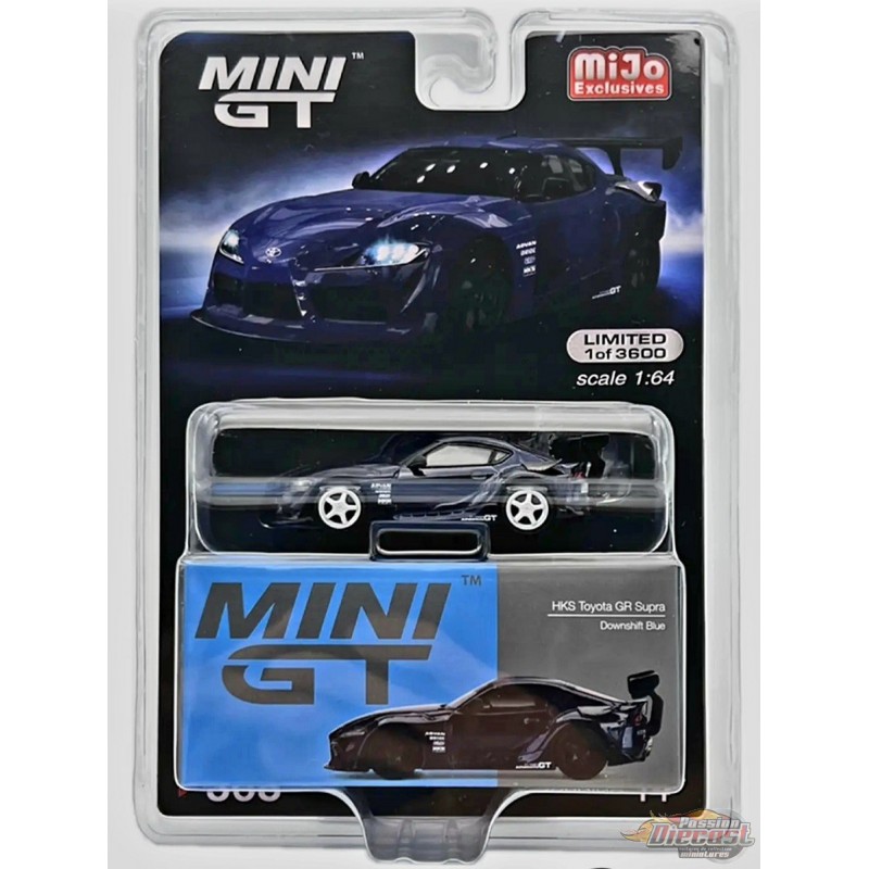 CHASE CAR Mini GT - 1:64 - HKS Toyota GR Supra (A90) Downshift Bleu - Mijo Exclusives USA - MGT00368GR