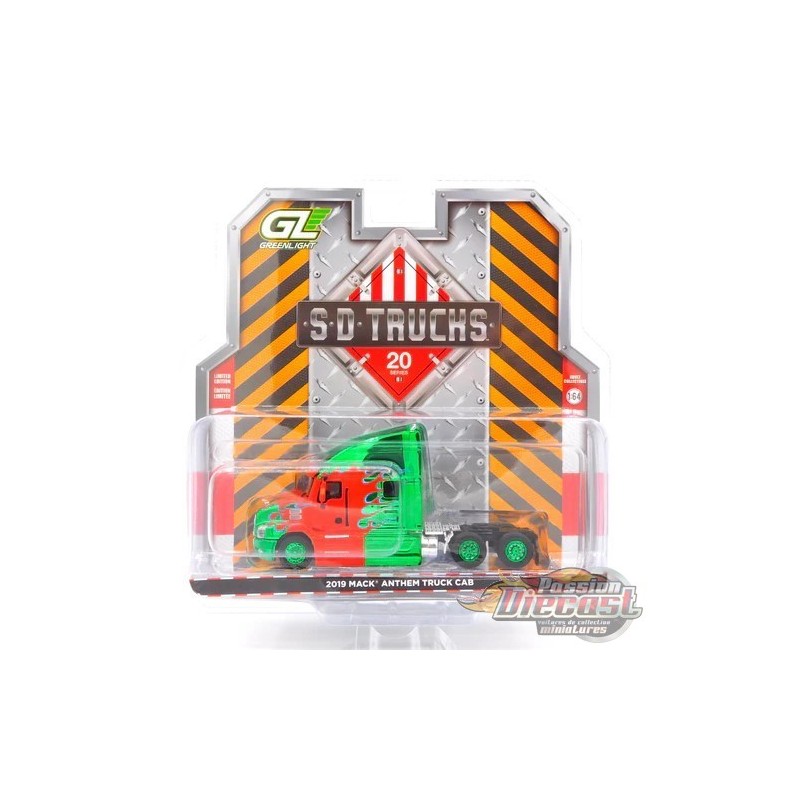 CHASE CAR Camion Mack Anthem 2019, cabine bleue avec flammes rouges - S.D Trucks Series 20 - 1/64 Greenlight - 45200 C