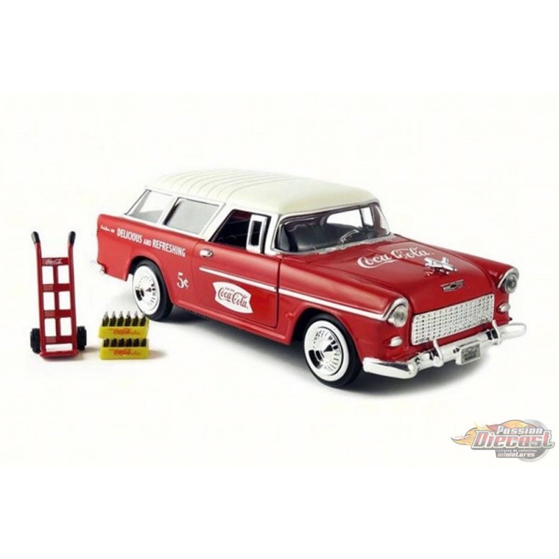 1955 Chevrolet Nomad Coca Cola with 2 bottle cases and metal handcart - Motor City Classics 1.24 424110