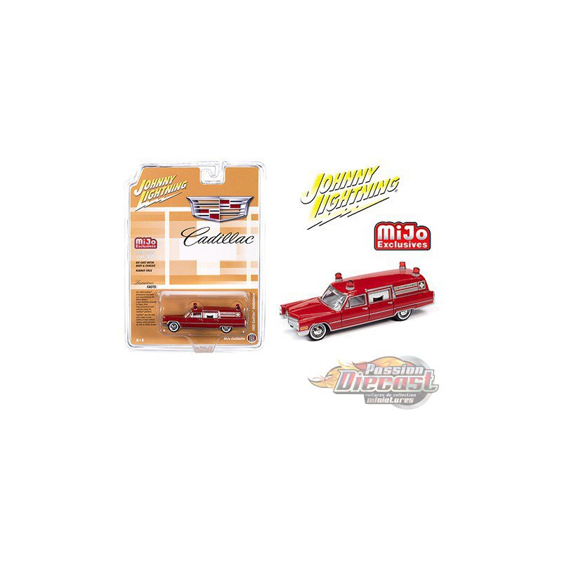 1966 Cadillac Ambulance Rouge - Johnny Lightning - 1:64 Mijo Exclusive - JLCP7351