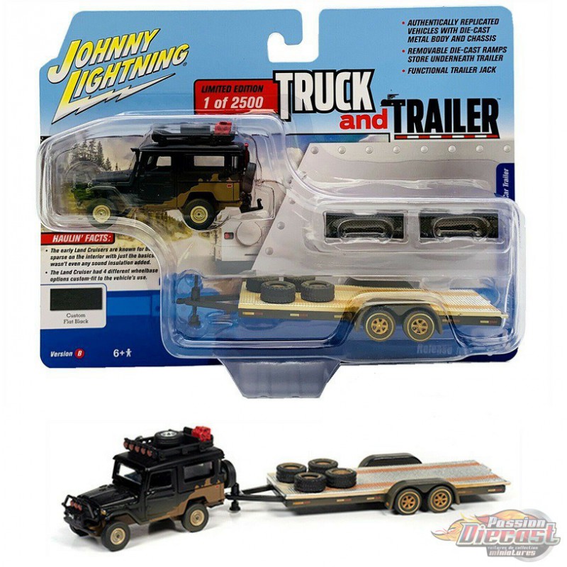 1980 Toyota Land Cruiser Flat Black Dirty avec remorque ouverte - Johnny Lightning 1:64 - JLBT013 B