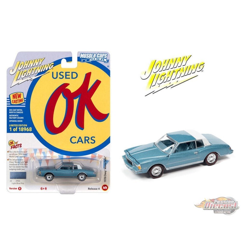 1978 Chevrolet Monte Carlo Poly bleu clair avec toit blanc - Johnny Lightning 1/64 - JLSP196 B