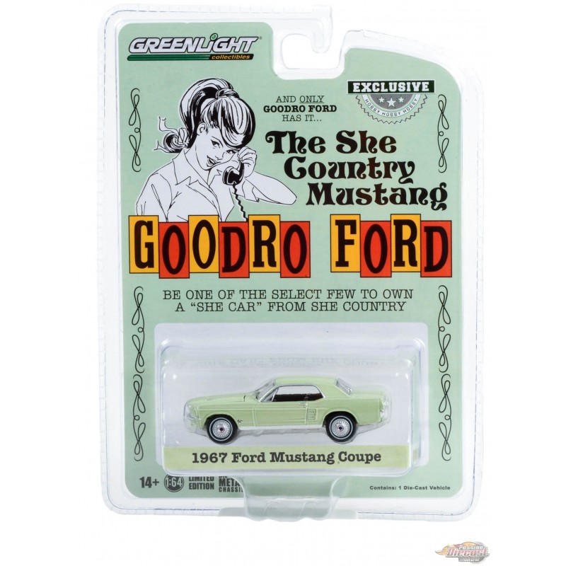 Bill Goodro Ford, Denver, Colorado - 1967 Ford Mustang Coupe Vert - Hobby Exclusive - 1/64 Greenlight - 30353