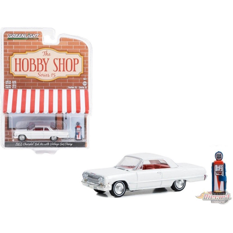 1963 Chevrolet Bel Air avec pompe à essence vintage - The Hobby Shop Series 15 - 1/64 Greenlight - 97150 A