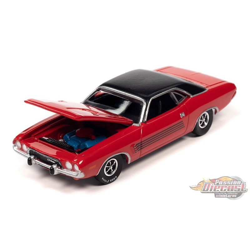 (Web Only) 1974 Dodge Challenger Rallye en Rallye Red avec toit en vinyle noir - Auto World - 1/64 - AWSP117 B