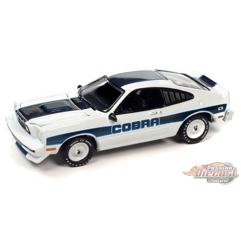 • 1978 Ford Mustang Cobra II en blanc brillant avec rayures bleues
