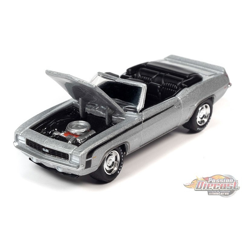 1969 Chevrolet Camaro RS/SS Cabriolet en argent Cortez avec bande latérale de hockey noire - Johnny Lightning - 1/64 - JLSP335 B