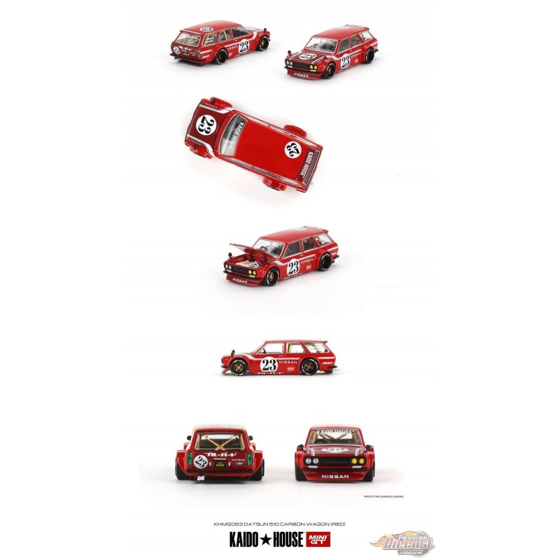(Web Only) Kaido★House - Datsun KAIDO 510 Carbon Wagon Rouge - Mini GT - Mijo Exclusives - 1/64 - KHMG063