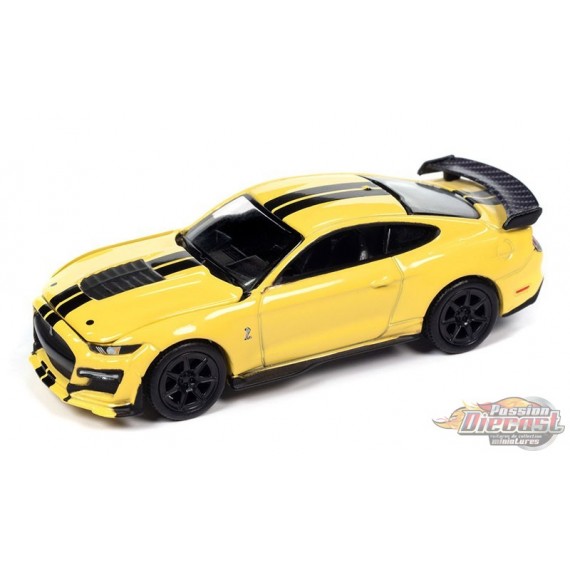 2021 Ford Mustang Shelby GT500 Carbon Edition Track Grabber Jaune avec Twin Upper Noir Stripes - Auto World - 1/64 - AWSP136 A